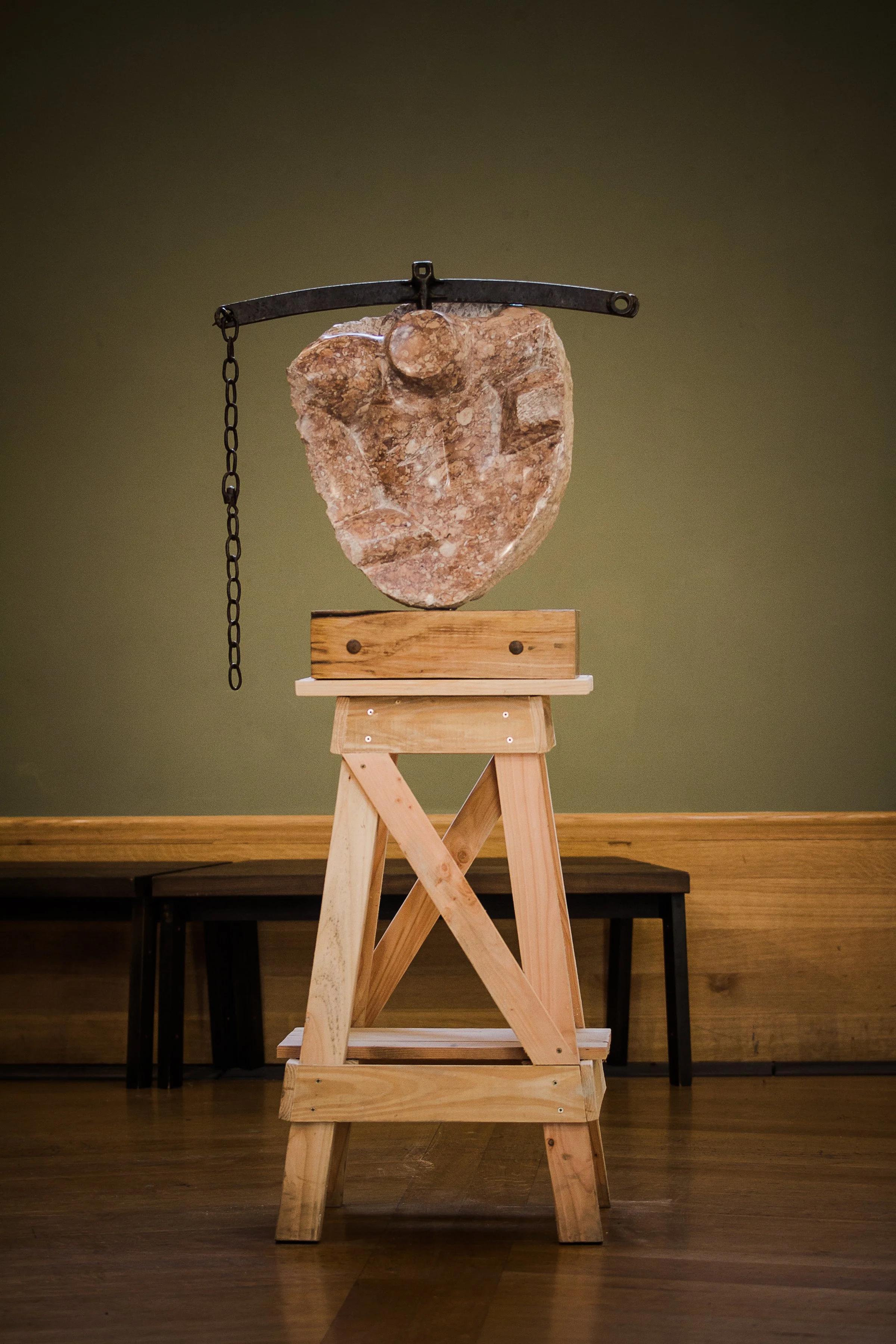 'ARROW OF TIME' / Kerry Red Marble, Found Wrought Iron, Copper Nails, Oak / Price: 6500